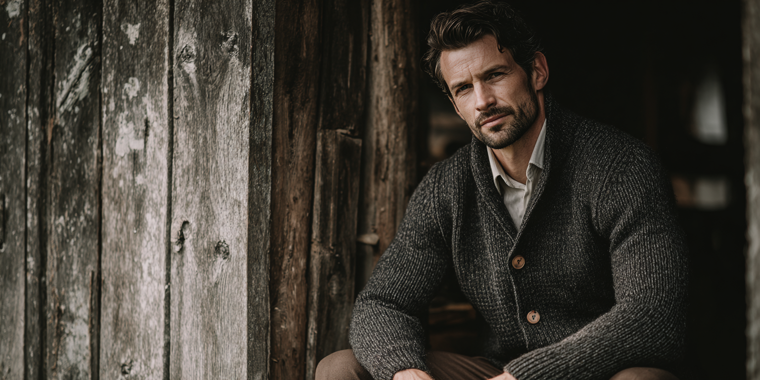 Maxwell | Figursydd Herr-Cardigan i Stickat Material