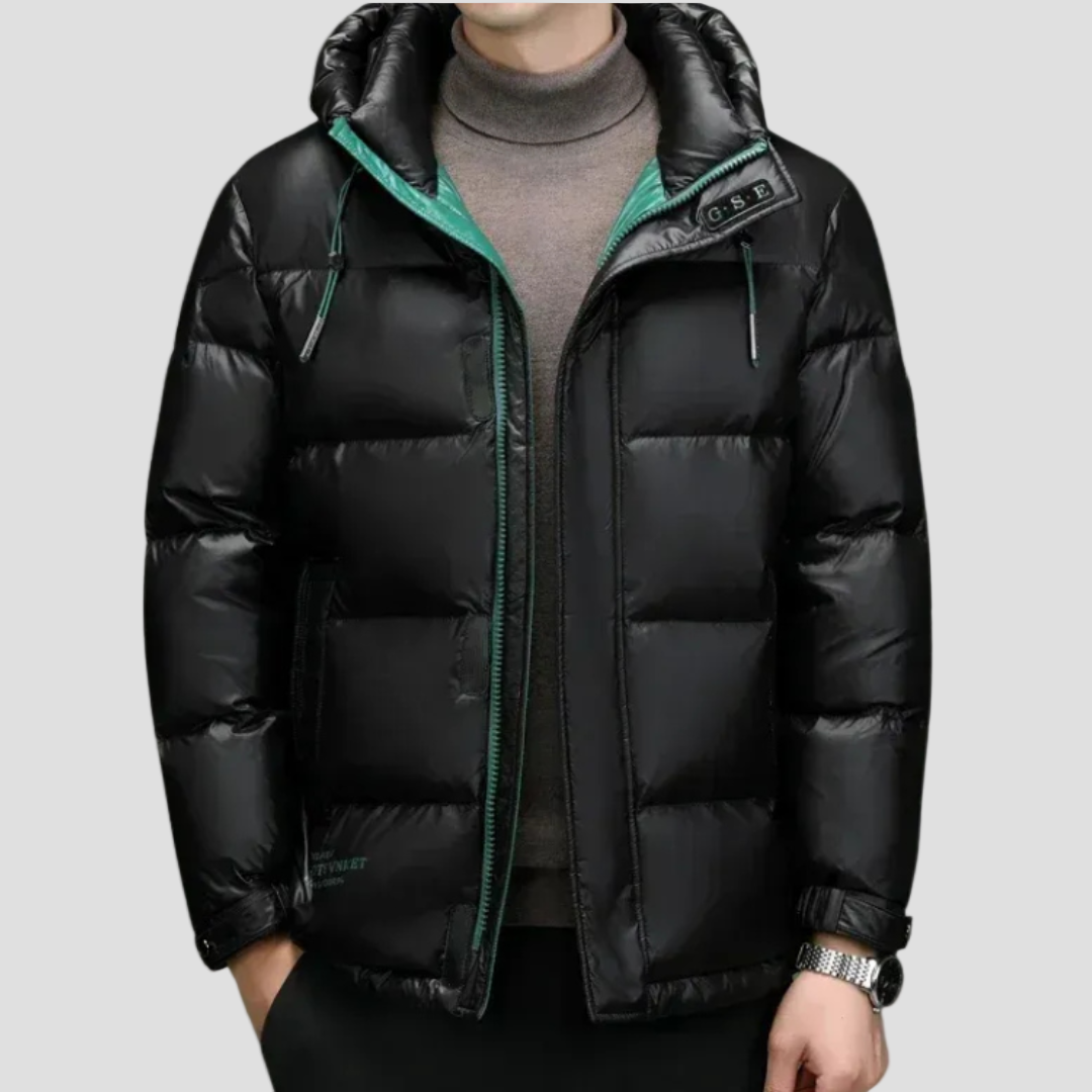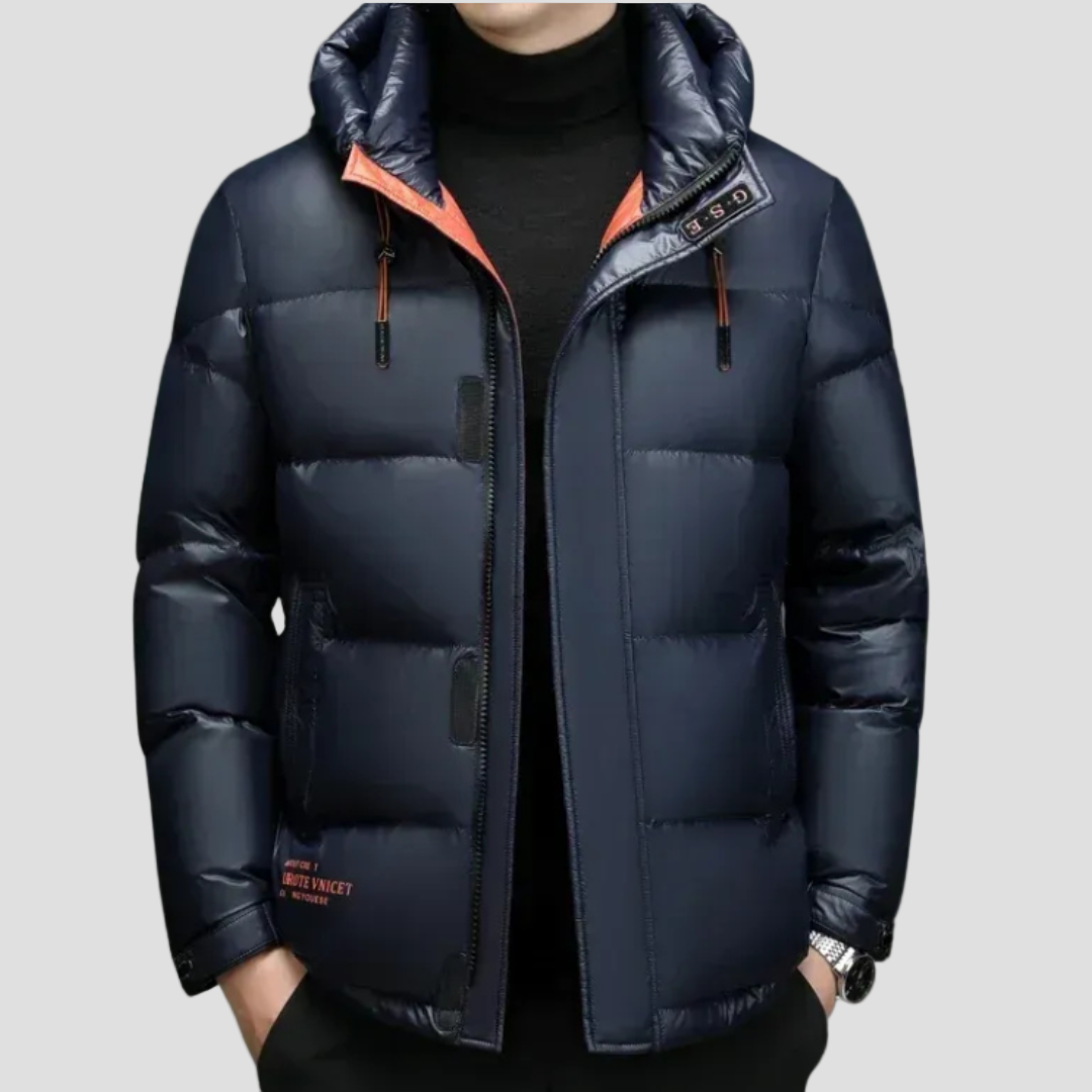 Albin dun vinterjacka är perfekt för kalla dagar med sin isolerande dunfyllning. Jackan har en praktisk huva och är tillverkad av vattenavvisande material för att skydda mot regn och snö. Den kombinerar stil och funktionalitet för optimal komfort under vintern.